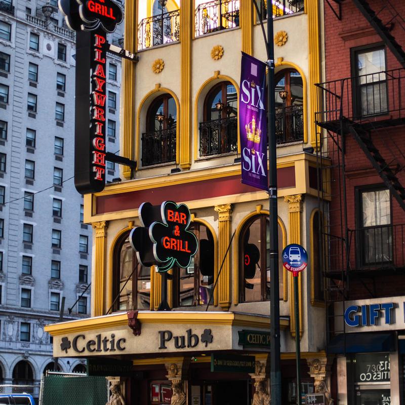 We are a rocking Irish bar & restaurant located right in the heart of the theater district, located blocks away from Times Square & near all major modes of public transportation. Perfect for dinner before the theater, grabbing a cocktail or for your next special event. We show live Soccer, College Games, Sunday NFL, Monday night football, Baseball, Basketball, Hockey and UFC with four floors of wall to wall HD TV screens!